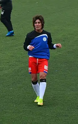 She played in six of the 2011 FIFA Women's World Cup qualification – UEFA Group 3 matches,[5][6][7][8][9][10] three of the UEFA Women's Euro 2013 qualifying – Group 2 games,[11][12][13] and three of the 2015 FIFA Women's World Cup qualification (UEFA) – Group B matches.[14][15][16] She scored in March 2011 the only goal in Georgia's first official win.[13] Chichinadze scored three goals in total for the Georgian women's national team.[13][8][16]