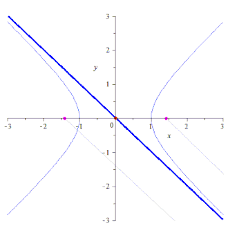 - The two tangents at the midpoint O are perpendicular, and each of them forms an angle of π/4 with the line connecting F1 and F2.