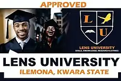 Lens University is a private university located in Ilemona, Oyun Local Government Area, Kwara State, Nigeria. It was established in 2025 and is licensed by the National Universities Commission (NUC).[1][2] The university was approved by President Bola Ahmed Tinubu, along with 10 other private universities in Nigeria, on March 3, 2025.[3]
