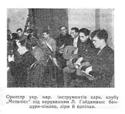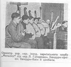 In 1921 Leonid Haydamaka had already formed a bandurist ensemble at the Metalist club, but because of the lack of good quality banduras and the fact that the bandura movement had not yet become mainstream, this attempt was not very successful.