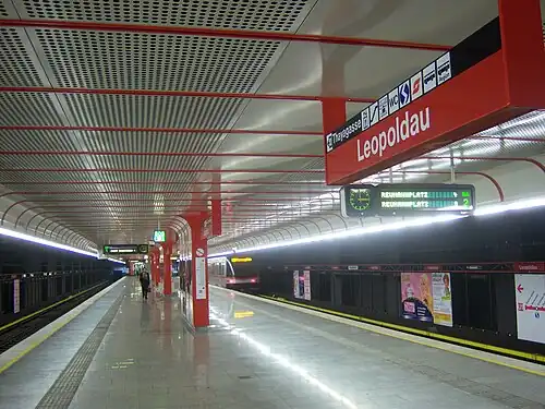 Leopoldau is an end station of the U1 of the Vienna U-Bahn.[1] It is located in the Floridsdorf District, underneath the Wien Leopoldau railway station, which is served by both regional and S-Bahn trains. The station opened in 2006.