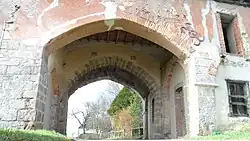 Despite everything, the monks enjoyed a good reputation and when, on 18 November 1790, two administrators from the district of Joigny came to affix the seals on the abbey, they held back.[38] Nonetheless, on 23 January 1791 the monks were forced to leave by the revolutionaries, and the monastery was sold as a bien national in 1792. The buyer, an artisan, dismantled it bit by bit.[39] Nothing remains of the medieval monastery but the entrance to the property, which dates from the 12th century and includes a small chapel dedicated to Notre-Dame-de-Pitié. The chapel dates to the 13th century and was a place of local pilgrimage. By contrast, by 1868 all that remained of the 18th-century monastery was the monks' quarters.[8]