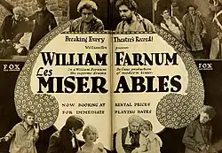 Les Misérables is one of many filmed versions of the 1862 Victor Hugo novel of the same name. It is a 1917 American silent film directed by Frank Lloyd, co-written by Lloyd and Marc Robbins, and produced by William Fox, released on December 3, 1917.[1] It starred William Farnum, Hardee Kirkland, and George Moss.[1]