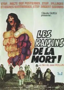Les raisins de la mort (English: The Grapes of Death, also known as Pesticide) is a 1978 French horror film directed by Jean Rollin. It centres on a young woman who becomes trapped in a village where a dangerous pesticide has turned the residents into aggressive zombies.[1]
