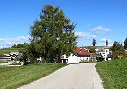 The local church is dedicated to Saint Oswald (Slovene: sveti Ožbolt) and belongs to the Parish of Višnja Gora. It is a medieval building that was restyled in the Baroque in the 17th century.[4]