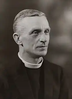 He was ordained in 1912 and was a curate at Ashford (1914–19). He was interviewed by the Chaplain-General in November 1916 for a commission as a Temporary Chaplain to the Forces. It was noted that, unusually, he could ride, speak French and German and preach extempore. He was posted to Malta, "the nurse of the Mediterranean", where he was given a "very satisfactory report".[2] He was demobilised in 1919. When peace returned he became a lecturer at Bishop's College, Cheshunt and then Warden of the Scholar Cancellarii, Lincoln. Appointed Archdeacon of Auckland in 1936, he was ordained to the episcopate as Bishop of Jarrow three years later.[3] While at Jarrow, he conducted the wedding of his secretary to Michael Ramsay, future Archbishop of Canterbury.[4] Owen was a highly regarded scholar and was considered for the vacant diocesan bishoprics at Southwell (1941),[5] Blackburn[6] and Lincoln (1942)[7] but he was not appointed. Instead, Archbishop Temple arranged for his translation to another suffragan bishopric, Maidstone, in 1943 with special responsibility for supporting Chaplains and for making arrangements for post-War ordination candidates who had fought in the War.[8] The following year, Owen was preaching in the Guards Chapel in London when it was hit by a flying bomb.[9] He was physically unhurt but badly shaken by the experience. Nevertheless, he was considered for the diocesan sees of Salisbury[10] and Lincoln in 1946[11] and was appointed to Lincoln. Although he had been assured by his doctors of his fitness for the post, he fell ill and died in March 1947, aged 60. "He did not make public appearances, or write books, or attract attention to himself. It required a flying bomb to make him for a moment a head-line figure".[12]