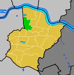 Lesnes Abbey gives its name to one of the London Borough of Bexley's 21 electoral wards. The ruins themselves are in the north of Lesnes Abbey ward. Woolwich Road, the A206 road, cuts through the middle of the ward spanning east to west; the A2041 road spans north to south marking the ward's western boundary. West Heath is located within the ward to the south of Woolwich road. Lesnes Abbey ward is 2.5 km (1.6 mi) long north to south at its longest point, and little under 1.5 km (0.93 mi) at its widest point east to east. The population of the ward at the 2011 census was 11,346.[10]
