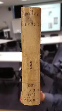 - ^ The incident is recorded in the proceedings of the Court of Aldermen. The volume had fallen into the hands of an acquaintance of Robert Broke, the Common Serjeant of London, and on 1 July 1540, he was instructed by the Court to make an offer of 20 shillings for its surrender.[5]