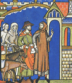 ![]() Illustration from the Morgan Bible of the Levite and his concubine. | |