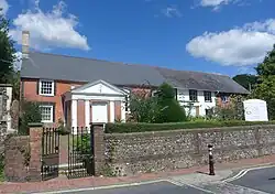 Lewes Friends Meeting House is one of three surviving 18th-century Friends meeting houses in Sussex, along with Herstmonceux (1734) and Horsham (1786).[16] It was designated a Grade II listed building on 29 October 1985.[17] It is registered for worship in accordance with the Places of Worship Registration Act 1855; its number on the register is 4502.[18] The meeting house remains in use with one service on Sundays, and a midweek meeting also takes place at a nearby venue.[19] The meeting house represents one of the many strands of Protestant Nonconformist belief which have shaped Lewes's history for more than three centuries. "The roll-call of the denominations that have ... been present in the town is unusually long":[20] among others, Unitarians, Methodists, Baptists, Strict Baptists, the Countess of Huntingdon's Connexion, Presbyterians and Congregationalists all founded chapels between the 17th and the 19th century,[21] and most of these congregations have continued in some form into the 21st century.[22]