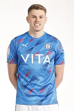 On 4 November 2023, he put in a man of the match performance in a 0–0 draw at home to Burton Albion after centre-back partner Nathan Smith was sent off, and after the game commented that he felt his physicality had greatly improved over the previous 12 months as he adapted to League One football.[25] However, seven days later he made a mistake to give away the equalising goal in a 1–1 draw at Lincoln City, only to come off the bench to score his second career goal in the replay at Burton Albion four days on from the Lincoln game.[26]