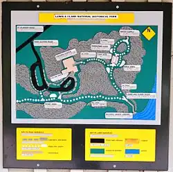 This map outside the Lewis and Clark National Historical Park visitor center points visitors to the various historical landmarks within the park, including the reconstructed Fort Clatsop.