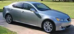 The Lexus IS (XE20) is a car produced by the Japanese carmaker Toyota under its luxury division, Lexus. Classified as a compact executive car, it represented the second generation of the Lexus IS. Serving as Lexus's entry-level sedan from 2005 until its production ended in 2013. Toyota manufactured the XE20 at the facility in Tahara, Aichi, and the Kyushu factory in Miyawaka, Fukuoka (until 2012). It was available as both a four-door sedan and a two-door coupe—the latter designated by a "C" at the end of their name (e.g., "IS 250 C").