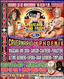 - ^ "Noche redonda para Máscara Año 2000 en su aniversario 40 en el CMLL" (in Spanish). November 24, 2018. Retrieved November 18, 2019.