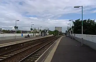 Leytonstone High Road is a railway station in Leytonstone in the London Borough of Waltham Forest, on the Gospel Oak to Barking line (currently branded as the Suffragette line of the London Overground), 9 miles 76 chains (16.0 km) down the line from Gospel Oak and situated between Leyton Midland Road and Wanstead Park. It has two platforms that are elevated approximately 20 feet (6 m) above ground level, each of which contains a metal shelter, covered but not completely enclosed. Ticket machines and Oyster validators (for touching in and out) are installed under the arch at the foot of the stairs.