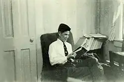 In the spring of 1946, Lee left Japan, returning to Taiwan in March on an American liberty ship.[37] With the Retrocession of Taiwan transferring governance of the island to the Republic of China, the mainland Ministry of Education allowed all Taiwanese students previously enrolled in the Imperial Universities to enroll at National Taiwan University (NTU; previously Taihoku Imperial University), which Lee did, joining the university's Department of Agricultural Economics as one of its only two students. He had two professors, one of whom was Hsu Ching-chung, who later served as vice premier.[38] Also at this time, Lee began reading deeper into Chinese literature, especially the works of Hu Shih, Guo Moruo, and Lu Xun. His worldview was also influenced by reading Fyodor Dostoevsky's The Idiot.[39] He continued an interest in Marxism, joining a Marxist study club at NTU and writing his undergraduate thesis, "A Study of the Problems of Taiwan’s Agricultural Labor," by applying Marxist class struggle and surplus labour theories.[40] He briefly joined the Chinese Communist Party (CCP) twice—once in September 1946 and again in either October or November 1947—but withdrew his membership both times.[41]