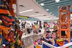 Concourse B is situated in a satellite building connected to the main terminal by a walkway. This concourse serves international flights, primarily from the United States and Canadian airlines. It offers seating areas, food stands, restaurants, a VIP lounge, and duty-free shops.[3] The satellite has 15 gates (gates 6-20B) spread across two floors, with those on the top floor equipped with jet bridges. All international airlines operate from this area.[4]