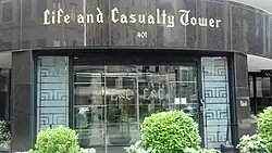 The Life & Casualty Tower (also known as the L & C Tower) is a skyscraper in Nashville, Tennessee located at 401 Church Street. It stands 152.5 meters (409 ft) and has 30 floors. It was designed by Edwin A. Keeble, with structural engineering done by Ross Bryan Associates, and was finished in 1957. It was Nashville's first true skyscraper and the tallest in Tennessee until 1965, when 100 North Main Street in Memphis surpassed it.