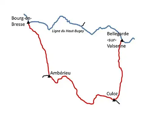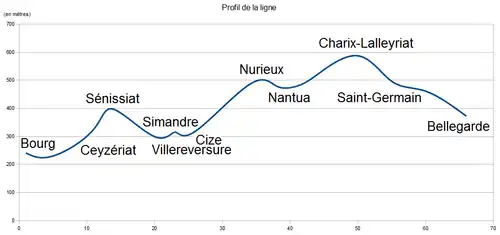 - ^ SNCF. "Ligne Bourg-Bellegarde: profil en long". La Ligne du Haut-Bugey (in French). Retrieved 30 September 2009.