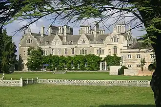 The Hall was originally part of Lord Burghley's estate,[1] then the Powys family (Baron Lilford) from 1711 to 1990. Lilford Hall and the associated parkland of 350 acres (1.4 km2) is specifically located along the River Nene for around a mile, and north-west of the village of Lilford, part of the parish of Lilford-cum-Wigsthorpe and Thorpe Achurch.[2] The land which was turned into the parkland was mentioned in the Domesday Book, and owned by King David I of Scotland at that time.