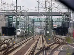 Limburg Süd (English: Limburg South) is a station in the town of Limburg an der Lahn, in the German state of Hesse. It is located in the Eschhöfer Feld ("Eschhofen field")[4] in the district of Eschhofen at the 110.5 kilometre point of the Cologne–Frankfurt high-speed railway. Limburg Süd is the only station in Germany that is served solely by Intercity-Express (ICE) services.