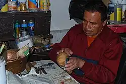The Linares family in Mexico City are among the best known practitioners of a craft known as “cartonería” or the use of papier-mâché to create hard sculptured objects. They have an international reputation for the creation of forms such as skeletons, skulls, Judas figures and fantastical creatures called alebrijes.[1][2] While the family’s history in the craft can be traced back as far as the 18th century, it was the work of Pedro Linares, who invented the alebrijes, that made the family famous. Pedro’s work became internationally famous through the patronage of artists of Diego Rivera and the promotion of it at the 1968 Olympic Games and through documentaries. Pedro died in 1992, but his sons and grandsons continue with the craft, which is sold internationally and have been exhibited in museums in various countries.