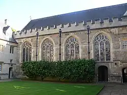 The college guarantees all undergraduates three years of college-owned accommodation. Similarly, virtually all graduate students are provided housing for the duration of their studies. The college's housing stock is extensive and centrally located. About 50 students live on the three quads described above, with over 100 more living in rooms above the shops on the other side of Turl Street.[36] These include the Mitre rooms, formerly guest rooms of the Mitre Inn, which has been owned by the college since the 15th century. The accommodation was incorporated into the college in 1969, but the restaurants were left to the inn. Lincoln House, directly across from the college, was constructed in 1939 as an annexe. There were at one point vague plans for a bridge over Turl Street connecting the annexe to the college proper; these never materialised. Further accommodation is provided at Bear Lane (across High Street). Donors Emily and John Carr gave to the college numbers 113 and 114 on the High Street, with land extending back to Bear Lane, which the college still owns and which constitutes the Bear Lane accommodation.[37]