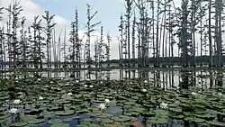 Lincoln County's geography is defined by two physiographic regions of Arkansas: the Arkansas Timberlands and the Arkansas Delta (in Arkansas, usually referred to as "the Delta"). These two regions are separated by Bayou Bartholomew, the world's longest bayou, which approximately splits the county into eastern and western halves with significant differences in geography.[5] In the east, the Arkansas Delta is a subregion of the Mississippi Alluvial Plain, which is a flat area consisting of rich, fertile sediment deposits from the Mississippi River between Louisiana and Illinois.[4] The western half is part of the Arkansas Timberlands, a portion of the Gulf Coastal Plain characterized by flat pine and cypress forests and silviculture rather than row agriculture. The county is the eighth-smallest in Arkansas, with a total area of 572.17 square miles (1,481.9 km2), of which 561.20 square miles (1,453.5 km2) is land and 10.97 square miles (28.4 km2) (1.9%) is water.[2]