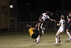 ![]() Taylor (17) heads the ball past Arizona State's goalkeeper on October 14, 2011, in Tempe, Arizona | |||