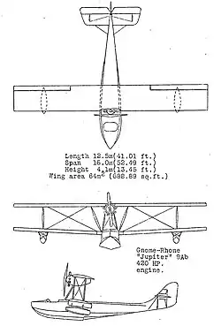 - catapult-capable mailplane, powered by a 310 kW (420 hp) Gnome-Rhône 9Af Jupiter; (nine built).[22]