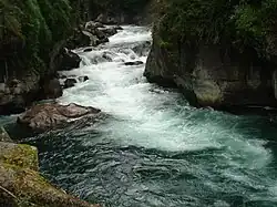 The Liquiñe River is a river in the Andes of Los Ríos Region, Chile. The river is most known for the many hotsprings the upwell at its middle reaches where the town of Liquiñe is currently placed.