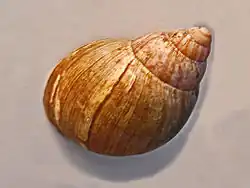 Shell of Lissachatina glutinosa from Ethiopia on display at the Museo Civico di Storia Naturale di Milano | |