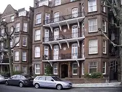 There were service lifts (some hand operated) to raise coal to the upper floors, a speaking tube with a whistle to allow the residents to attract the attention of and then to speak to porters, and rubbish chutes from kitchens to ground-floor collection bins.[6] In autumn 1939, the pacifist and suffragist Mary Sheepshanks moved into an apartment in Parliament Hill Mansions after she was bombed out in her Hampstead home. Her old friend, the Czechoslovak Jewish activist and social worker Marie Schmolka — who helped political refugees and Jewish adults and children in the lead-up to World War II — lived here between 1939 and 1940.[7]