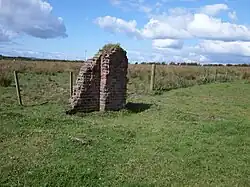 The row of three railway workers cottages survive as private residences and the loading dock is still a prominent structure in this otherwise somewhat featureless landscape near Lissens Moss. The railway fencing and gate survive as does the substantial road overbridge. The signalbox's old chimney partly remains as do the foundations and the cistern.