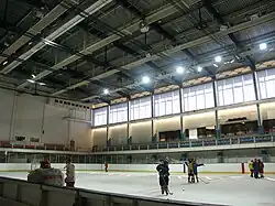 На ледовой арене оборудована площадка по стандарту НХЛ размером 60 на 26 метров и установлены трибуны вместимостью 100 человек.