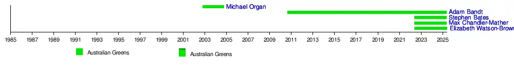 - ^ Resigned from the Greens and sat as an independent until 23 November 2024.