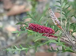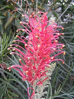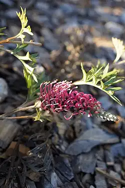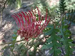 'Claire Dee' | Red flowering form of G. banksii x G. bipinnatifida[5] | photos | ||