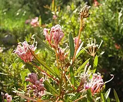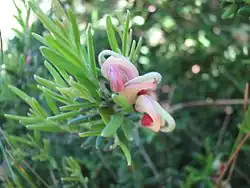 'Pretty Pink' | Grevillea arenaria x G. 'Crosbie Morrison'. Introduced in Victoria in 1985. | [2] | ||