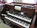 E-200 | 1965–1971[21] | A version of the E-100 specifically designed for churches. Liturgical Preset Tabs, no Cymbal/Brush or Reiterate on the Percussion which plays from the Lower Manual. | |