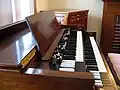 Monophonic attachment keyboard instrument, intended to accompany the pianos with lead voice of organ and orchestral sound. It consists of two units — a 3-octave mini keyboard attaching under the piano keyboard, and a tone cabinet including electronic sound generator, amplifier and loudspeaker.[42] The sound generator is based on a vacuum tube oscillator and octave divider circuits originally designed for Novachord. There are three minor changed models:[41]
