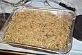 Matzah brei | A Passover breakfast dish made of roughly broken pieces of matzah soaked in beaten eggs and fried. | ||