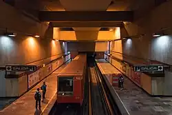 The following table lists alphabetically all 195 metro stations of the Mexico City Metro system;[1] the line or lines serving each station; the year the station opened; the type of station (underground, elevated or at-grade); and other transportation services the station has connections with, such as the Mexico City Metrobús (a bus rapid transit system),[3] the Xochimilco Light Rail,[4] STE trolleybus networks,[5] and the RTP bus system.[6]