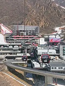 The Rosa Khutor Alpine Resort was part of the "mountain cluster" of Olympic venues and housed around 3,000 people. | [37][38] | ||