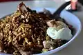 Dinuguan | Stew | A savory stew of meat simmered in a rich, thick spicy gravy of pig's blood, garlic, chili, and vinegar. | ||