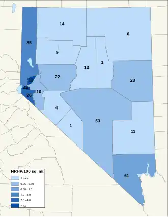 This is a list of properties and historic districts in Nevada that are listed on the National Register of Historic Places. There is at least one listing in each of Nevada's 16 counties and one independent city.