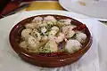 Migas ("crumbs") | Castilla–La Mancha, Andalusia, Aragon, Murcia, Castile and León, Extremadura | bread dish | small toasted pieces of bread (crumbs) with olive oil, garlic and bacon, mainly. | |