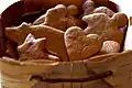 Pastry made of shortcrust dough formed into hearts, filled with vanilla cream. |