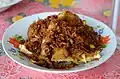 Usually wide rice noodles fried with chicken or pork, and soy sauce. | |