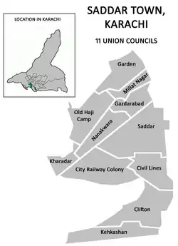 The following is a list of the union councils of Karachi, and their respective neighbourhoods and suburban localities. Karachi has a total of 25 Towns, and 246 Union councils.