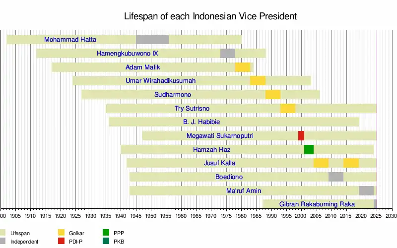 - ^ Elected by the MPR to fill an intra-term vacancy in the vice presidency.